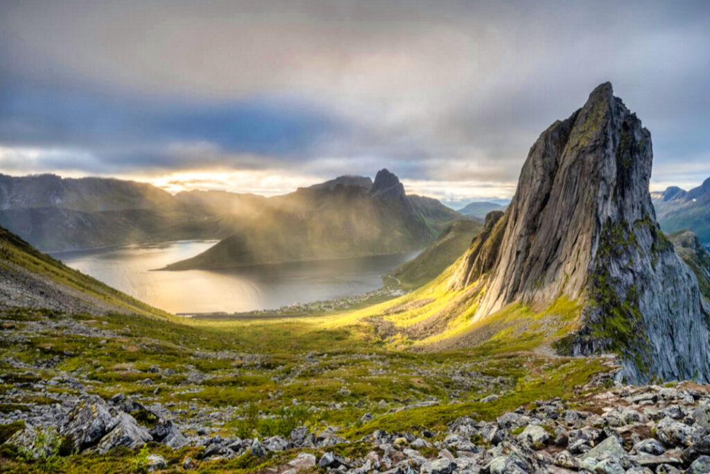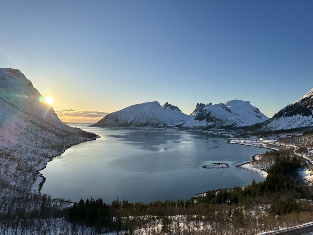 Visitamos los mejores miradores de Senja: Tungeneset, Bergsbotn, Ersfjord + trekking al famoso mirador de Segla (2–3h, dificultad media). Atardecer en la costa.